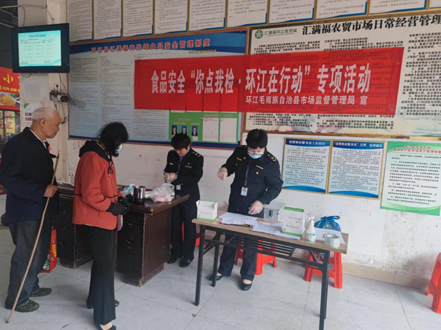 为进一步宣传食品抽检知识,科学解读食品抽检工作措施,近日,环江毛南族自治县市场监督管理局开展食品安全“你点我检·环江在行动”专项行动。