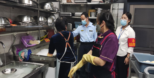 活动中,执法人员及包保领导对餐饮店的证照、从业人员健康体检、各功能间卫生、餐饮具清洗消毒、食品采购索证索票,落实食品安全“两个责任”,建立“日管控、周排查、月调度”工作机制,以及制止餐饮浪费宣传提示等方面,逐一进行检查。查看餐饮店在日常接待、婚宴、外卖等环节是否主动提醒适量点餐,是否有诱导、误导消费者超量点餐等违法行为,督促餐饮服务经营者落实社会责任,将珍惜粮食、反对浪费纳入员工培训内容,推行“小份菜”“半份菜”“N-1”点餐模式,引导消费者自觉抵制餐桌浪费。