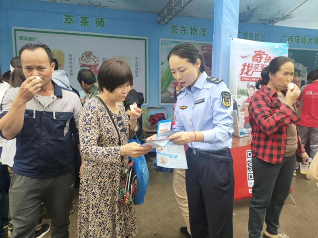 兴宁区市场监管局工作人员走进苦瓜节现场开展“珍爱生命 远离毒蘑菇,珍爱粮食 制止餐饮浪费”宣传活动。(苏琳 摄)