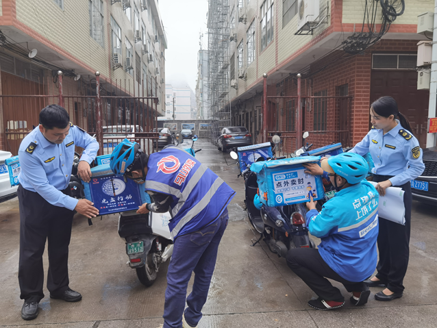 马山县市场监管局依托外卖骑手与经营者、消费者互动频繁、点多面广的优势,发挥“骑士”的纽带作用,动员骑手们加入“反浪费宣传员”行列,做文明节约的倡导者。三家外卖平台100余名骑手化身“反浪费宣传员”,在送餐箱上张贴“按需下单、不要贪多”等宣传标语,带着“厉行节约、反对浪费”的倡议,奔跑在马山的大街小巷,送至每一位经营者和消费者手中,让“小餐饮”带动“大文明”。