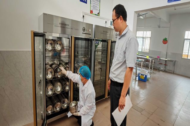 据悉,此次抽检重点覆盖新开办的学校食堂以及位置较为偏远的幼儿园,对学生每天使用的餐饮具(自行消毒)进行抽检。截至目前,已抽检20所学校。