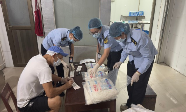 在广西泗水缤纷品牌管理有限责任公司的生产车间,执法人员对刚下线的鲜湿粉条展开细致检查。从原料供应商资质及采购票据,到生产车间的环境卫生,再到食品生产加工流程、产品储存条件,每处细节都对照《食品生产现场检查规程》逐一核查。