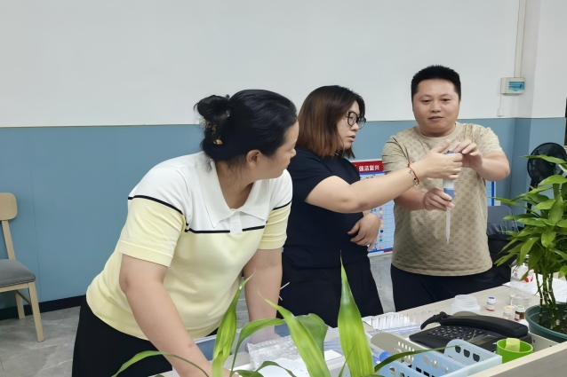 技术赋能,攻坚克难。北海市质检所工程师团队针对企业“零基础”现状,量身定制“理论+实操”速成方案。理论速讲:浓缩核心要点,2小时内完成农药残留检测标准、试剂保存规范等关键知识传授;手把手教学:逐项演示酶抑制法操作等常用快检方法的操作流程,反复纠正“取样不准”“移液不规范”等细节问题,确保“教一遍会一遍”,结合实际案例带领企业人员完成全流程演练,直至其熟练掌握规范操作技能。