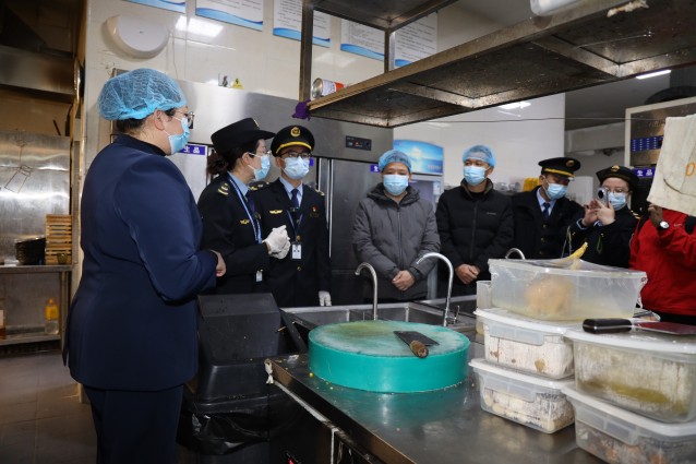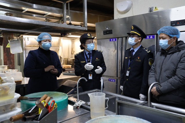 今年首次检查选址餐饮单位集中的右江区龙景片区,1月13日,执法人员与监督代表现场随机选取受检餐厅,先后来到广西安达曼国际酒店有限责任公司百色蓝梦湾特色餐厅和广西农耕园餐饮管理有限公司两家餐饮企业,重点对后厨环境卫生整治情况、食品原料采购验收与储存规范、餐饮具清洗消毒流程、食品留样执行标准、从业人员健康管理及制止餐饮浪费等核心内容进行细致查验,并提出整改意见。