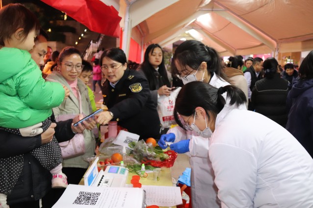 其中,“你点我检”便民服务台深受市民青睐。贺州市检验检测中心工作人员现场驻守,根据群众送检需求,对青菜、萝卜、葡萄等25份常见食品开展农残快速检测,结果均为阴性。执法人员表示,群众积极参与、工作人员现场检测,是“你点我检”的具象化表达,也是“服务惠民生”的生动诠释。