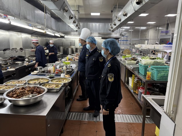 会议期间,崇左市市场监管局选派12名执法人员对崇左国际大酒店等3家接待酒店实行全程驻点保障,定人、定岗、定责紧盯食材验收、清洗切配、烹饪加工、备餐供餐、食品留样等全流程,严格执行生熟分开、荤素分开、烧熟煮透、交叉污染防控等操作规范,确保全程可追溯、问题可倒查。同时对水果、蔬菜、肉类、餐饮具等重点原料、餐具开展农药残留、瘦肉精、餐饮具洁净度等项目快速检测,随采随检。会议期间,共完成快检504批次,检出1批次餐饮具不合格,针对不合格餐饮具督促酒店立即整改,保障了400余名参会代表和工作人员的饮食安全。