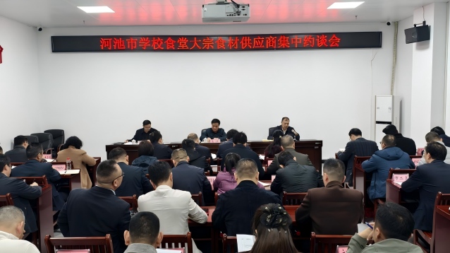 3月6日,河池市教育局、市场监管局召开全市学校食堂大宗食材供应商集中约谈会,进一步压实主体责任、明确监管要求,严防严控校园食品安全风险隐患。会议由市人民政府副秘书长韦晓主持,各县(区)教育局、市场监管局,30家校园食材配送企业、部分学校负责人参加。