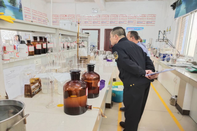 执法人员到饮用水生产企业检查出厂检验开展情况(黄贞艳 摄)