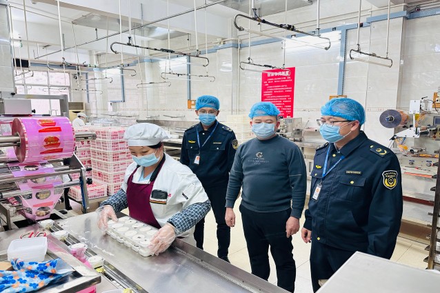 执法人员在食品生产车间检查