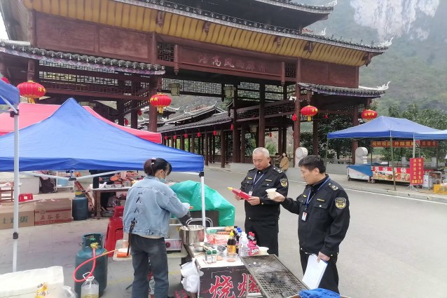 凌云县为营造文明和谐、喜庆祥和的节日氛围,维护春节期间文旅市场秩序,确保假日文旅行业安全,春节假期期间,凌云县市场监管局全力做好游客食品安全保障,为旅游饮食安全保驾护航。
