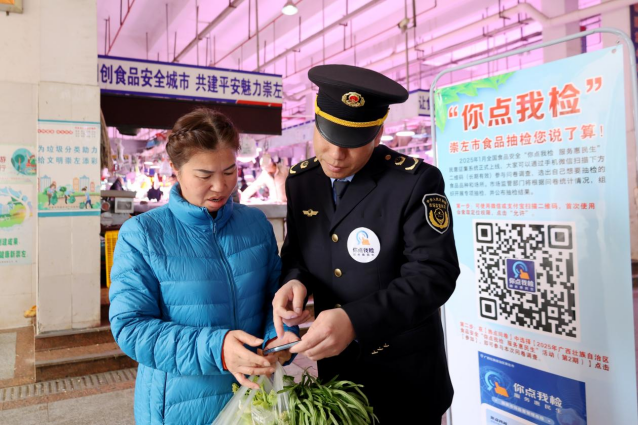 崇左市市场监管局食品抽检科负责人黄武艺介绍,“你点我检 服务惠民生”民意征集系统是国家市场监督管理总局最新推出的民意征集系统,市民朋友们可以用微信或支付宝扫一扫二维码,对关心的食品进行“点单”,市场监管部门将根据后台数据进行重点检测!“市民朋友1年365天、1天24小时随时都可以点选。”黄武艺说。