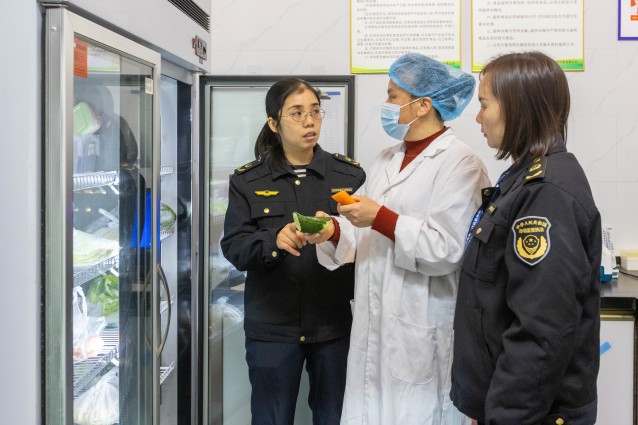 执法人员以食材供应商进货查验、供应食材质量管控、仓储配送条件、食品追溯管理为重点,紧盯配送食品进货查验记录制度落实和食品留样检测等情况,强化监督检查和指导,督促配送中心建立并完善食品进货查验记录制度,对每批次采购食品尤其是生鲜果蔬、禽畜肉进行食品安全快速检测、留样及记录,通过人防、物防、技防,确保配送到学校的每一份食材都安全可靠。