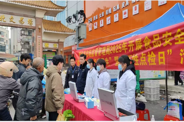 2月17日,浦北县市场监管局在钦州市市场监管局和市检验检测中心的指导下,于浦北交易市场开展“你点我检 服务惠民生”暨“百姓点检日”食品安全宣传活动。活动通过推广“你点我检”民意征集系统、开展食品安全科普宣传与食品快速检测服务,让市民直观了解食品安全监管工作,持续营造食品安全共治共建的良好氛围。