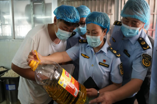 现场检查时,市场监管局执法人员查看了学校食堂食品安全公示制度、从业人员健康管理、进货查验制度、食品安全“日管控、周排查、月调度”制度的落实情况,并对食堂后厨的原料清洗切配、烹饪、原料仓库、留样及明厨亮灶等情况进行详细检查。