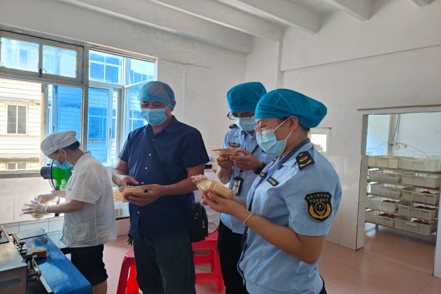 在昭平镇港梧食品厂、昭平镇梧香州饼家,执法人员认真查看生产条件及环境、原辅料进货查验、生产过程控制、食品添加剂使用、标签标识、出厂检验等方面是否符合相关规定,督促企业严格原辅料管理、生产过程控制、产品检验、标签管理等,严禁非法使用食品添加剂,从生产源头确保月饼质量安全。