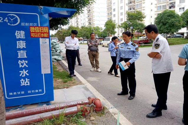 近日,百色市田阳区卫生健康局、市场监管局、住房和城乡建设局等部门联合行动,对辖区居民住宅小区直饮水站开展饮水安全隐患专项检查,切实保障居民饮水安全。