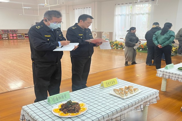 在厨艺比赛现场,监管人员是评委,更是食品安全规范的“现场指导员”。他们密切关注参赛人员在食材处理、烹饪加工、餐具使用等各环节的操作流程,适时从专业角度给予规范提醒与建议,将比赛现场转化为一堂生动直观的食品安全实践课。比赛结束后,监管人员对光明幼儿园食堂的食品安全管理制度落实、从业人员健康管理、食品原料采购贮存、餐饮具清洗消毒、食品留样、环境卫生以及“明厨亮灶”运行情况等进行了全面细致的检查,重点核查了食材来源的索证索票、库存食品保质期、生熟食品存放规范等关键风险点。检查结果显示,该园食堂总体情况良好,各项管理制度执行较为到位,后厨操作较为规范。