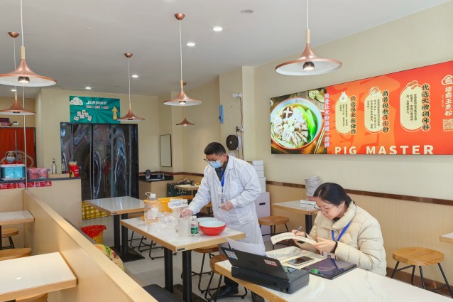 工作人员在餐饮店开展监督抽检
