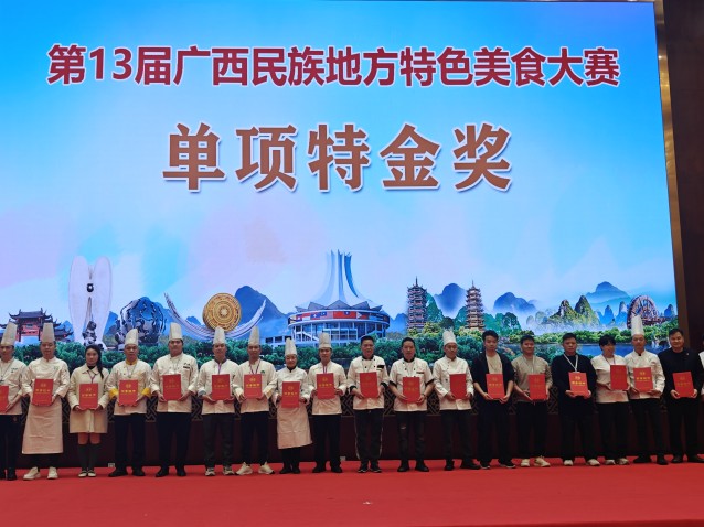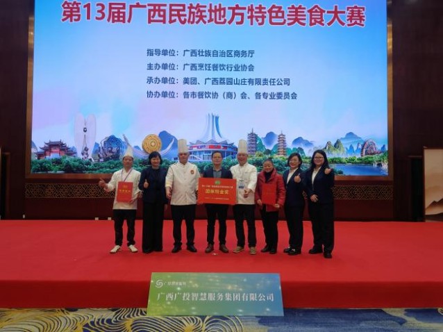 近日,第十三届广西民族地方特色美食大赛在南宁举办。作为广西餐饮行业年度规模最大、影响最广的品牌赛事,本次活动纳入商务部“中华美食荟”整体框架及自治区餐饮促消费指定项目,汇聚全区众多餐饮单位同台竞技。广西广投智慧服务集团有限公司餐饮管理中心组建厨师团队参赛,捷报频传:广投智慧服务集团一举斩获团体赛“特金奖”,贺州能源股份《桂风柠香焗南乡鸭》、投资大厦《芝士酱百香果焗虾》拿下单项最高荣誉 “特金奖”,投资大厦《仙鹤鸽吞乾坤》、能源中心《酥炸生蚝》获评 “金奖”,GIG项目《火山石排骨》、龙象府项目《脆皮澳洲牛肋骨》荣获 “银奖”,以全奖项覆盖的亮眼成绩,打响“广投智慧餐饮”品牌名片。