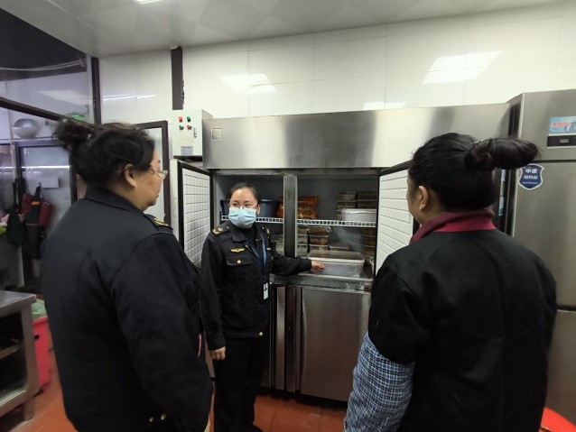 经现场检查,发现部分餐饮单位存在从业人员未规范佩戴口罩、散装食品未按规定张贴标签、油烟机油污清理不及时、冰箱结霜严重影响食材储存安全等共性问题。针对发现的问题,执法人员坚持“教育与整改并重”原则,一方面向餐饮服务从业人员普及食品安全相关法律法规及操作规范,结合典型案例讲解隐患危害,强化经营者责任意识;另一方面逐一提出针对性改进措施和整改建议,指导经营者立行立改,对无法当场整改的问题明确整改时限,实行闭环管理,确保隐患整改到位。