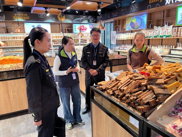 近日,灵山县市场监管局灵城市场监管所聚焦散装食品消费高频场景,对辖区内大中型超市开展专项检查行动,进一步规范辖区内超市散装食品经营秩序,筑牢食品安全防护网。