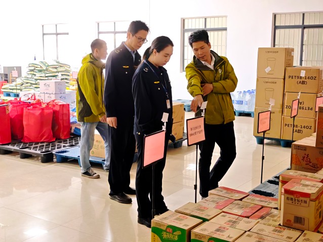 在广西桂然生态农业有限公司的仓储分拣区,执法人员重点检查了猪肉、蔬菜、粮油等大宗食材的采购验收、检验检疫证明归档、仓储温湿度控制及冷链运输记录。检查过程中,执法人员督促企业务必严格落实进货查验制度,确保每一批次食材来源可溯、质量可控。针对部分企业仓储分区不规范的问题,现场提出了整改意见,要求企业要吸取云南、甘肃等地发生的校园食品安全事故的教训,以案为鉴,严守源头“安全阀”。