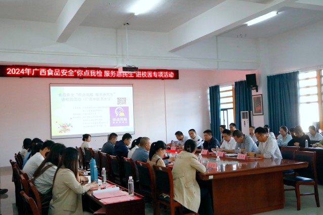 11月19日,广西市场监管局与南宁市市场监管局联合在广西中医药大学(仙葫校区)药学院开展2024年食品安全 “你点我检 服务惠民生” 进校园活动,以加深广大师生对食品抽检工作的了解,筑牢校园食品安全防线,守护师生的美好 “食” 光。
