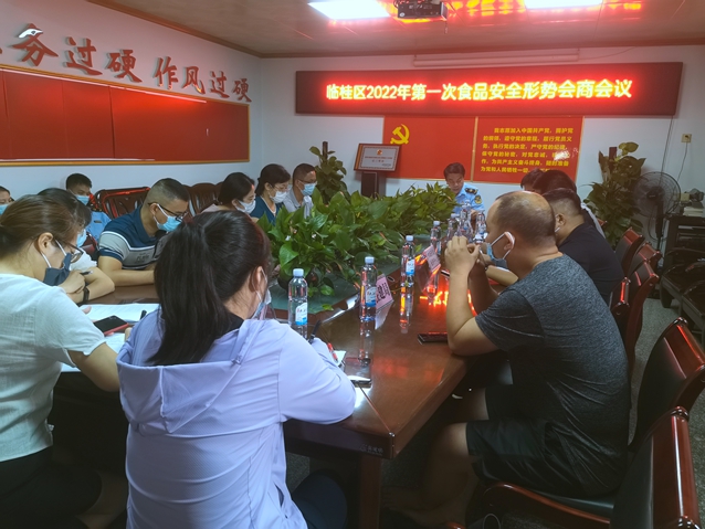 近日,桂林市临桂区食品安全委员会办公室组织召开2022年第一次食品安全形势会商会议,研究解决食品安全领域相关问题,切实维护人民群众“舌尖上的安全”。临桂区市场监管局、农业农村局、教育局、卫健局、文广体旅局、市场开发服务中心等成员单位负责人参加会议。