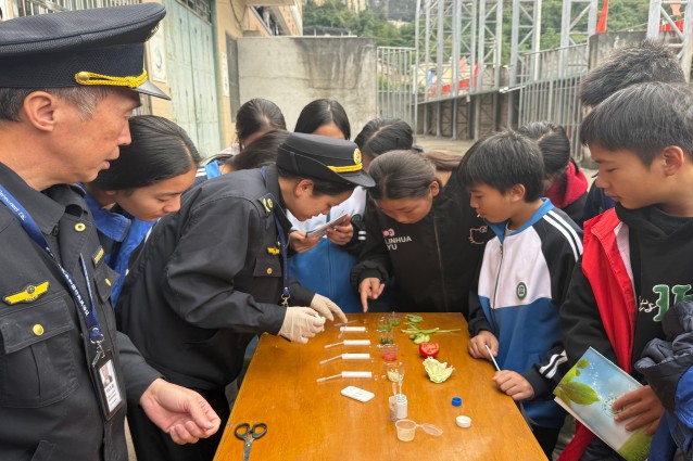 本次活动采用“点单式快检+沉浸式科普”模式,其中“你点我检”环节极具参与感与趣味性。执法人员现场邀请师生化身“食品安全监管员”,赋予大家自主“点单权”,师生可从当日食材中,对备受关注的蔬菜、肉类等品类随机“下单”,指定想要检测的食材。随后,执法人员即刻启用专业快检试剂与设备,对农残、兽残等项目进行快速检测,检测流程全程公开、操作直观可见,让师生沉浸式感受“舌尖安全”的筛查闭环。此外,执法人员还同步开展“制止餐饮浪费”宣传,通过发放海报倡议书、科普讲解与互动问答等形式,普及“光盘行动”理念,引导学生按需取餐、文明就餐,自觉养成节约粮食的良好习惯。