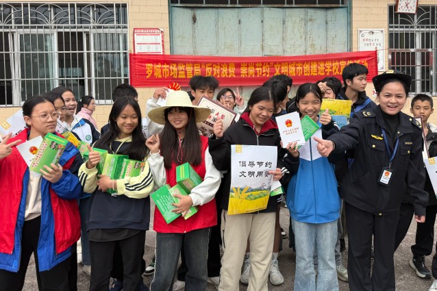 11月20日,罗城仫佬族自治县市场监管局走进天河镇初级中学,组织开展“你点我检·制止餐饮浪费”主题宣传活动。