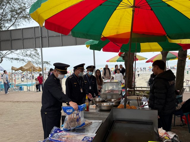 春节假期期间,执法人员深入商业街区、大型商场、旅游热门景区开展专项督导检查,共排查风险隐患12个,并现场提出整改意见、明确整改时限,督促经营者压实主体责任。在东巷步行街、西湾夜市、嘉乐城商场、网红餐饮店聚集街区,重点抽查餐饮店食材新鲜度、进货查验落实、后厨环境卫生。在白浪滩景区、金滩景区、国门景区及周边餐饮单位,严查环境卫生、餐具清洗消毒、明码标价执行情况。