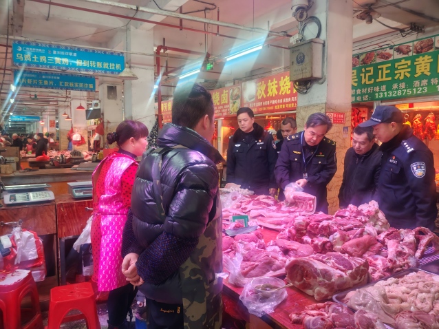 为切实保障岁末年初年货市场食品安全,维护人民群众“舌尖上的安全”,连日来,贺州市市场监管局联合贺州市公安局深入三县两区开展岁末年初年货市场食品安全联合执法检查。检查组深入年货集中销售点、农贸市场、大型商超、批发市场、农村集市、临时年货摊点、网络食品仓储点等场所,重点对年货礼盒、酒水饮料、冷链食品、儿童食品、地方特色食品和生鲜猪肉等产品进行检查。在大型商超,检查组重点核查食品经营主体资质、食品标签标识、冷链食品管理与进货查验制度等;在农贸市场,检查组聚焦检查开办方进货查验、生鲜猪肉产品是否经检验检疫等。严厉打击生产、销售有毒有害食品、假冒注册商标、非法经营等犯罪行为。据统计,本次专项执法检查共出动执法人员56人次,检查大型商超16家、农贸市场20个、各类食品销售点280余处,现场查处并责令整改相关食品安全问题32项,扣押2家未经检验检疫猪肉423.34斤,相关违法线索已移交属地市场监管部门立案调查。