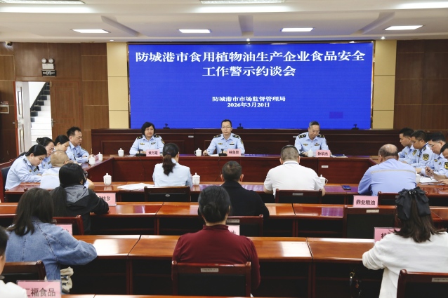 3月20日,防城港市市场监管局召开全市食用植物油生产企业食品安全警示约谈会,该局分管领导出席会议并作工作部署。