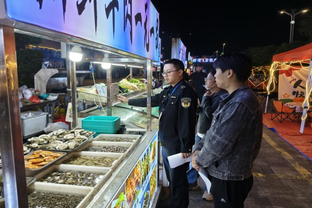 在座谈指导的基础上,该所对北部湾一号、东郡足球公园夜市外摆点开展常态化现场巡查,聚焦座谈要求落地实效逐项核查。检查中重点排查食品摊位健康证明的有效性、“三防”设施配备使用情况、明码标价落实情况及经营资质公示完整性,对排查发现的未规范亮证、索票索证不全等问题,现场下达整改指引,督促摊贩立行立改;同时耐心讲解相关法律法规,引导摊主主动落实主体责任、规范合规经营,兼顾监管有力度与服务有温度,推动摊贩从“被动整改”向“主动合规”转变。