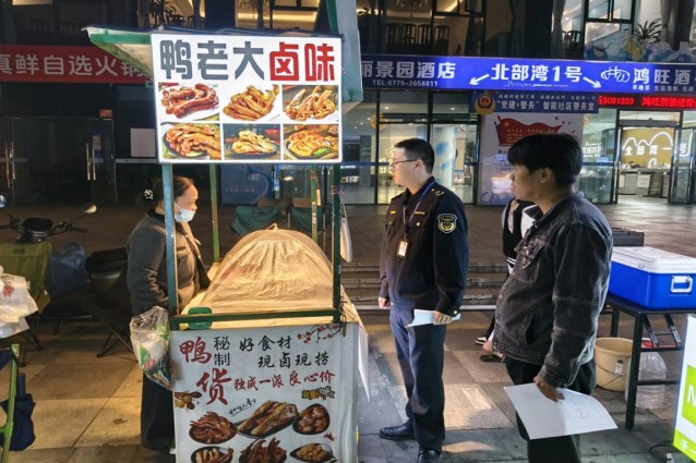 近日,北海市海城区市场监管局高德市场监管所锚定北部湾一号、东郡足球公园等外摆经营点集中区域,创新采取“座谈指导+现场检查”双轮驱动模式,精准发力规范经营秩序,切实实现便民利民与监管提质双赢。