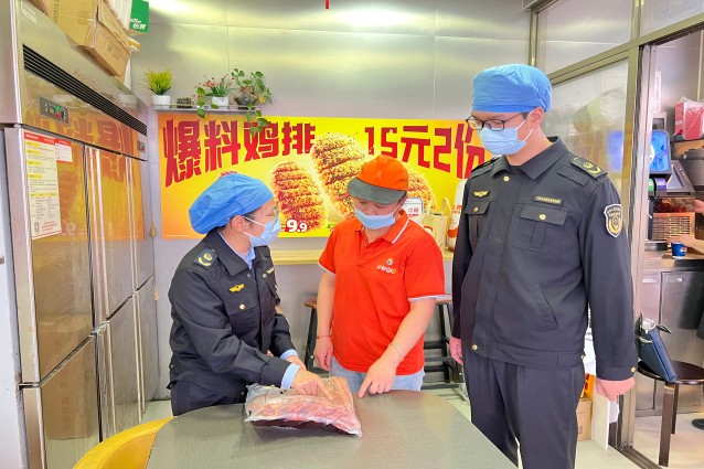 食材真实性与质量是本次检查的“重中之重”。执法人员围绕炸串、烧烤类餐饮的原料采购、储存、加工全链条,细致查验肉类原料的采购票据、供货商资质证明及检验检疫报告,精准排查是否存在“鸭肉冒充牛肉”“低价肉替代高价食材”等货不对版、欺诈消费者行为。同时,对食材冷藏冷冻条件、生熟食品分区存放、加工工具消毒保洁等关键环节进行逐一核查,严防交叉污染风险,明确要求经营者严格落实进货查验和索证索票制度,坚决杜绝使用过期、变质及来源不明食材。