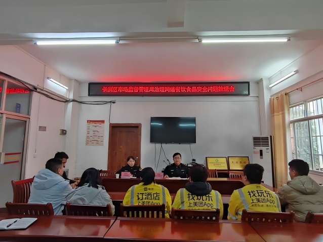 为有效防范和化解网络餐饮服务中的食品安全风险,坚决打击各类网络餐饮违法经营行为,切实保障人民群众“舌尖上的安全”,近日,梧州市长洲区市场监管局结合当前网络订餐行业的特点和突出问题,组织召开了网络餐饮食品安全问题专项治理推进会。会议召集了辖区内美团和淘宝闪购两家网络餐饮服务第三方平台相关负责人,以及部分骑手代表参加,共同研讨和部署下一步治理工作。