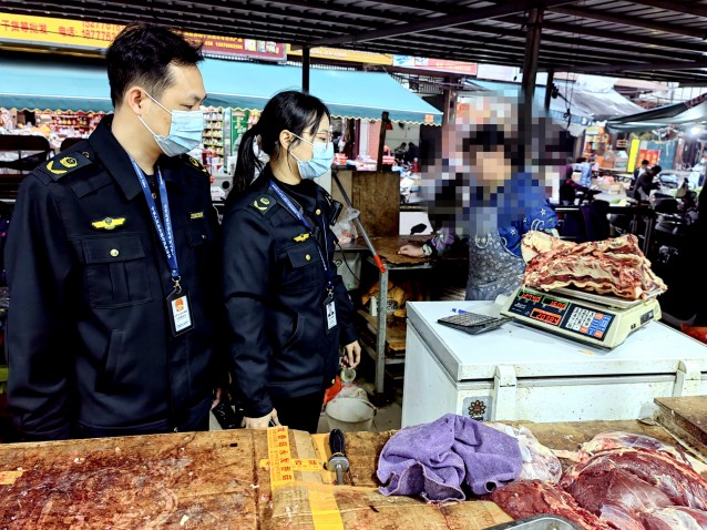 为进一步规范肉类市场经营秩序,切实保障人民群众饮食安全,近日,百色市田阳区市场监管局聚焦民生关切,组织开展了牛肉市场专项检查行动,通过精准摸排、联合打击、长效监管“三步走”,全面织密肉类产品安全防护网。