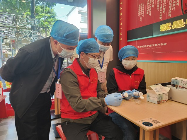 “八桂食安”西林县志愿服务大队志愿者对餐饮店使用的食用油开展过氧化值指标快速检测