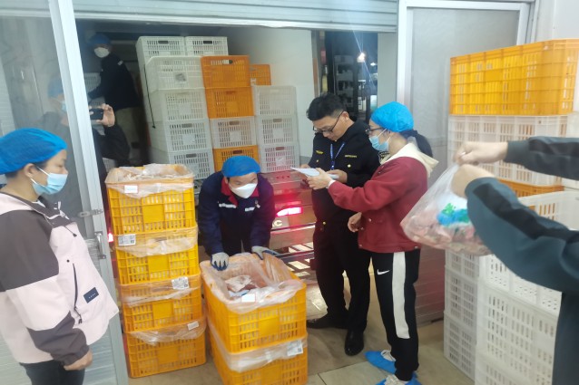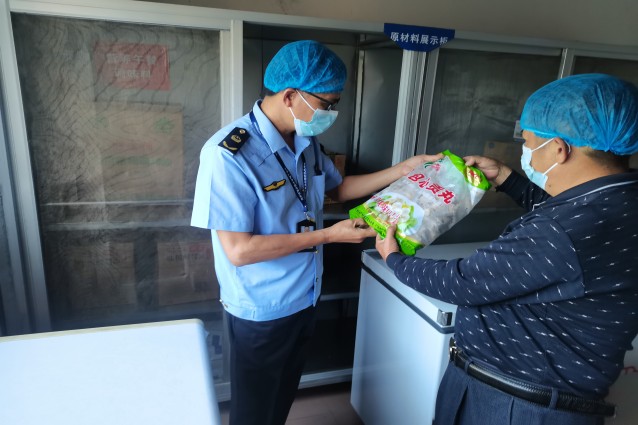 执法人员检查食材质量