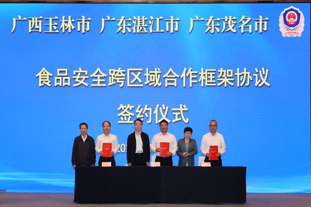 近日,广西玉林市、广东湛江市、广东茂名市市场监管局在广东省湛江市签订《广西玉林市、广东湛江市、广东茂名市食品安全跨区域合作框架协议》。