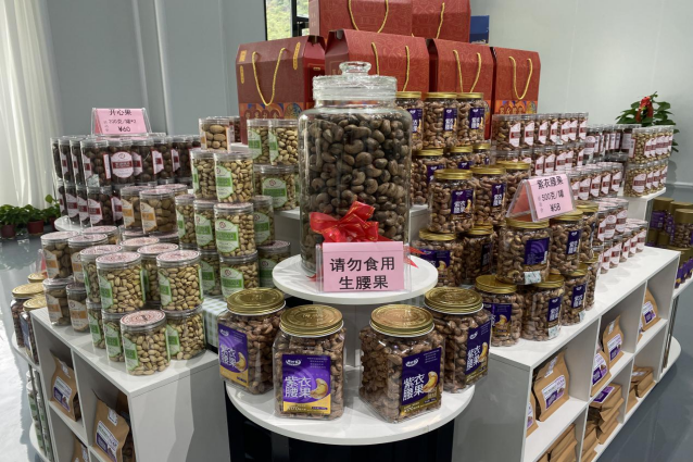 近年来,靖西市依托龙邦国际性口岸、岳圩国家二类口岸等高效便捷互市通道贸易的资源优势,大力发展落地加工产业,建设了龙邦口岸落地加工和老乡家园等产业园区,利用粤桂东西部协作和中车集团定点帮扶工作机制,整合财政、协作帮扶资金推进标准厂房建设和注资入股的方式,对“三高”加工企业加大政策扶持力度。采取“龙头企业+村集体(社区)合作社+易地搬迁户(边民)”联企、联社、带农合作模式,引进东部落地加工企业,打造完整的上下游供应链,助力腰果深加工产业降本增效。今年1月至10月,龙邦口岸落地加工进口商品总额为31亿元,9家规模以上企业的落地加工产值达到了13.06亿元,同比增长157.94%。规上企业靖西广康食品公司刘勇总经理说:“目前工厂有10条大型生产线,满产状态下每天有80多名员工在忙碌地生产,可以加工50吨越南腰果,全年通过边境合作社采购原料近万吨,预计产值超3亿元。”